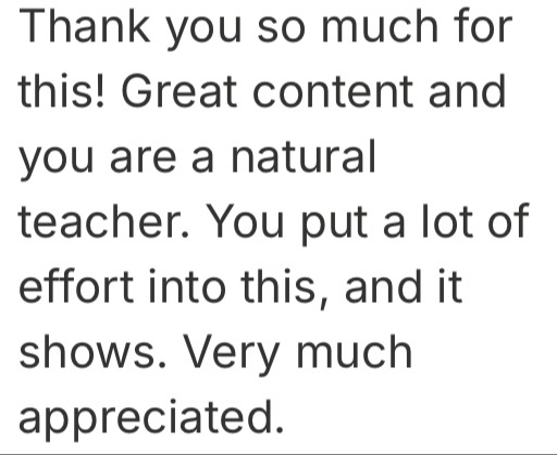"The way you explain everything I feel like a pro already."